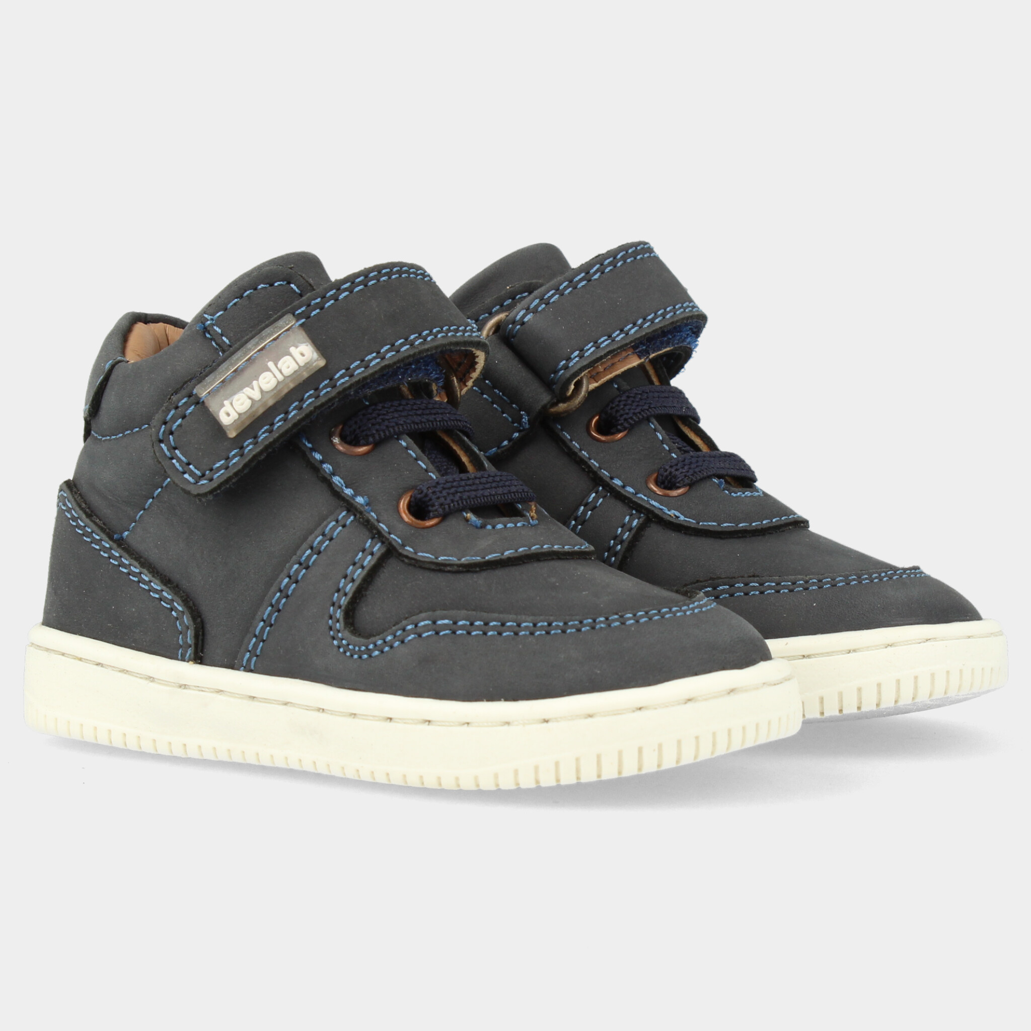 De perfecte eerste stapjes sneaker! Dit mid-cut model biedt optimale ondersteuning met een combinatie van veters en klittenband. Gemaakt van hoogwaardig leer en voorzien van een uitneembare zool voor extra comfort. Met deze sneakers is jouw kleine avonturier klaar voor de dag.